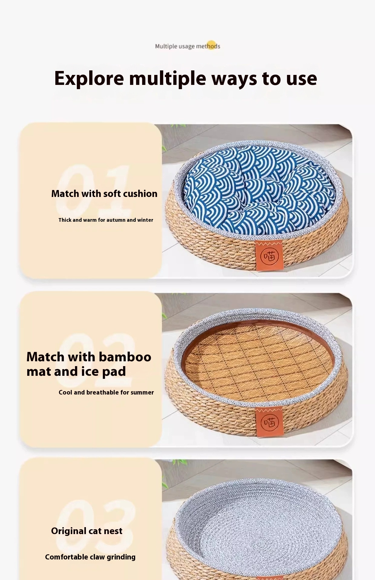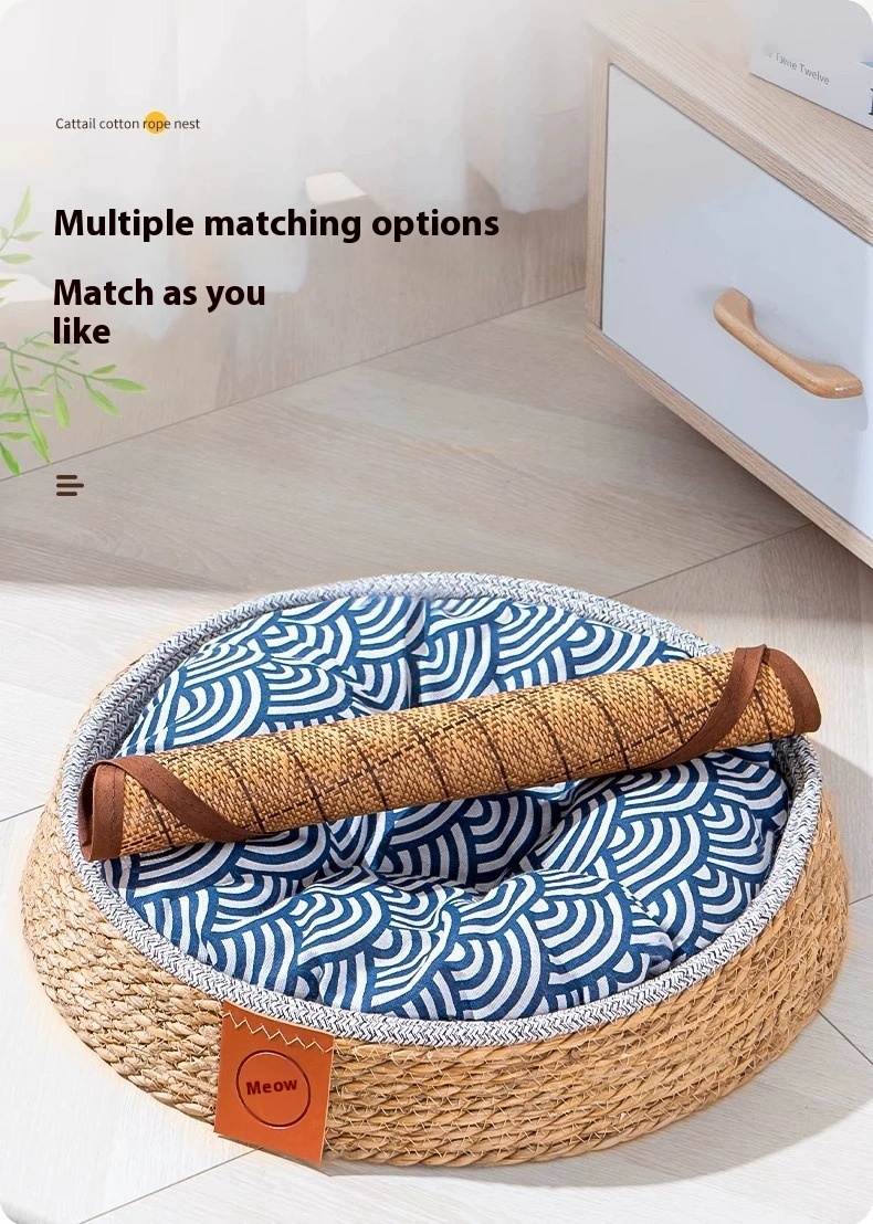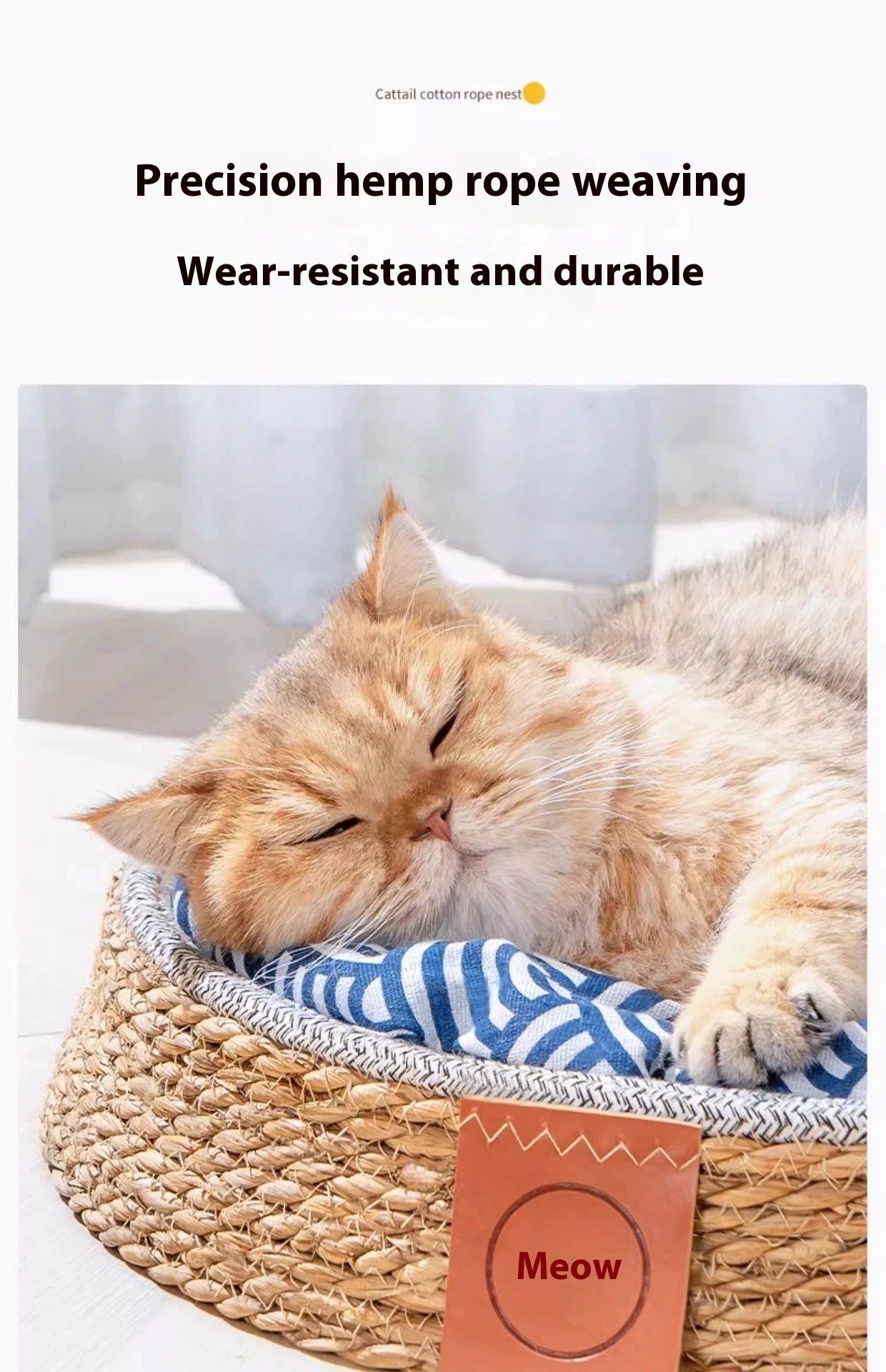 Treat your furry friend to a comfortable and breathable rattan pet nest that combines style and function. Crafted from durable rattan with a soft cushioned interior, this cat bed offers a cool, airy space in summer and a warm, cozy hideaway in winter.